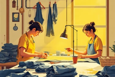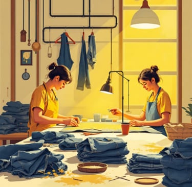 Skilled artisans meticulously apply intricate embroidery and custom handwork, transforming denim into unique, personalized garments.